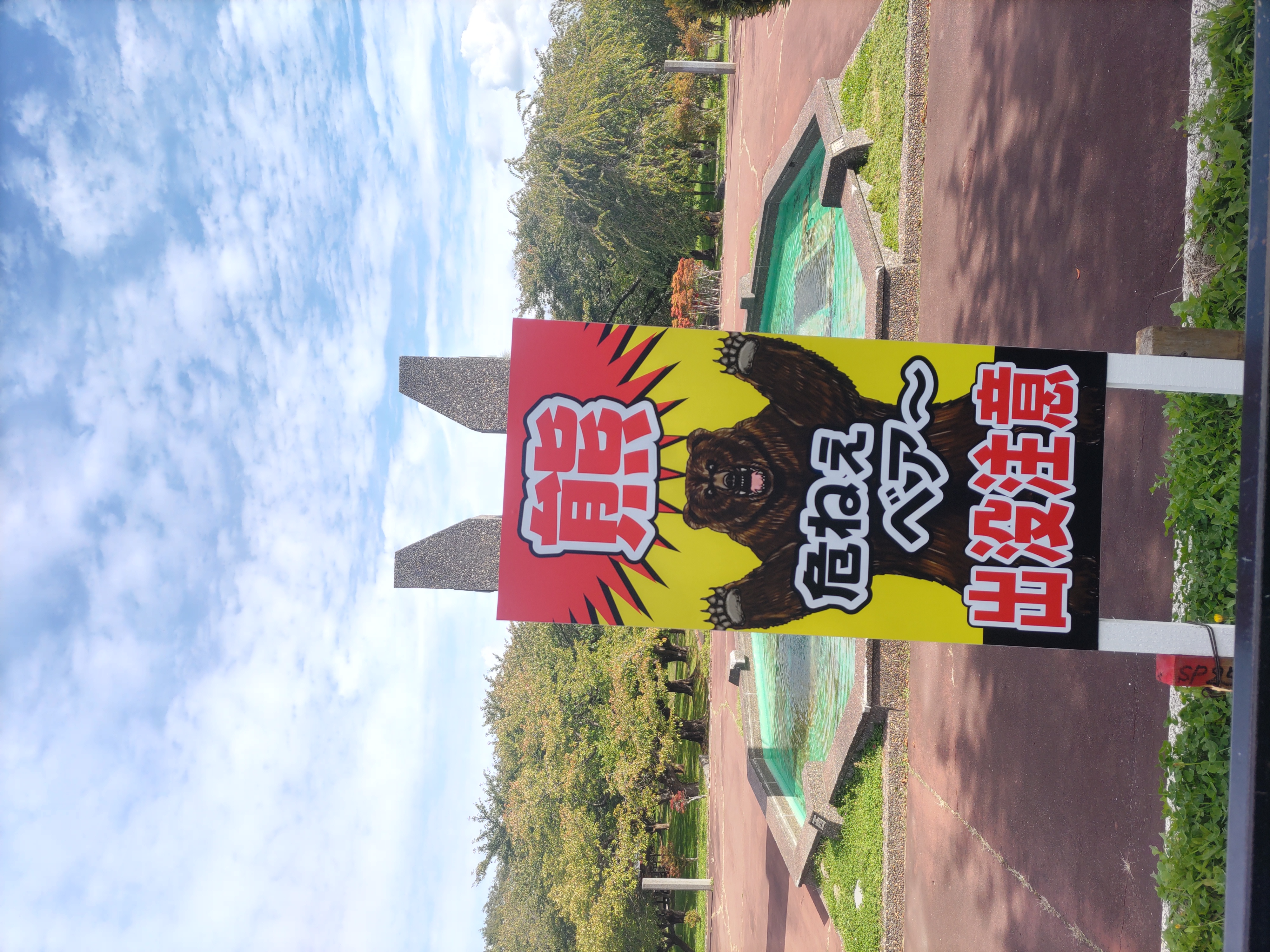 オニウシ公園内にも熊出没注意の看板が立てられてます。
