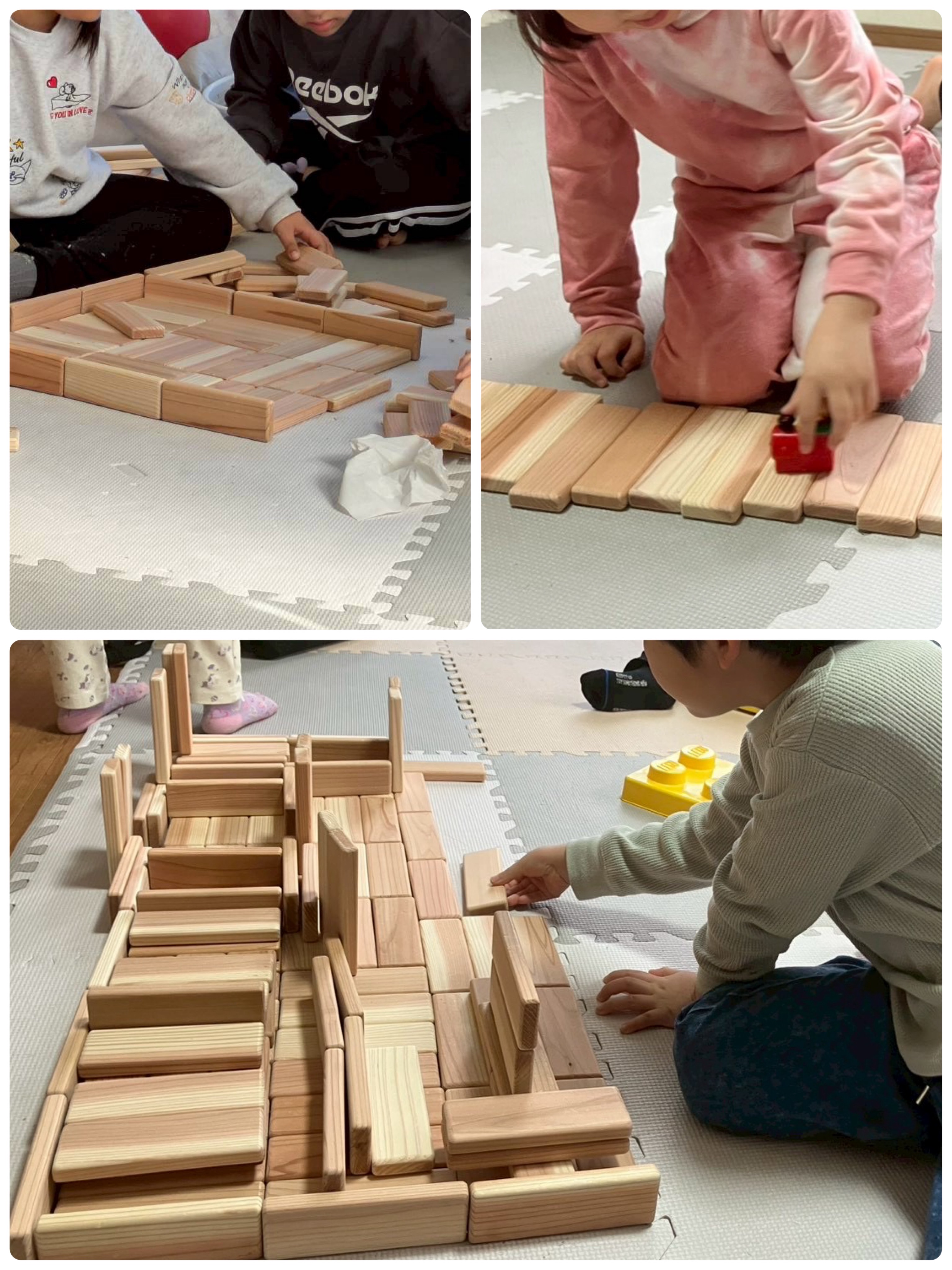 創造力豊かなみんなは、レールを作ったり、お家を作ったりと