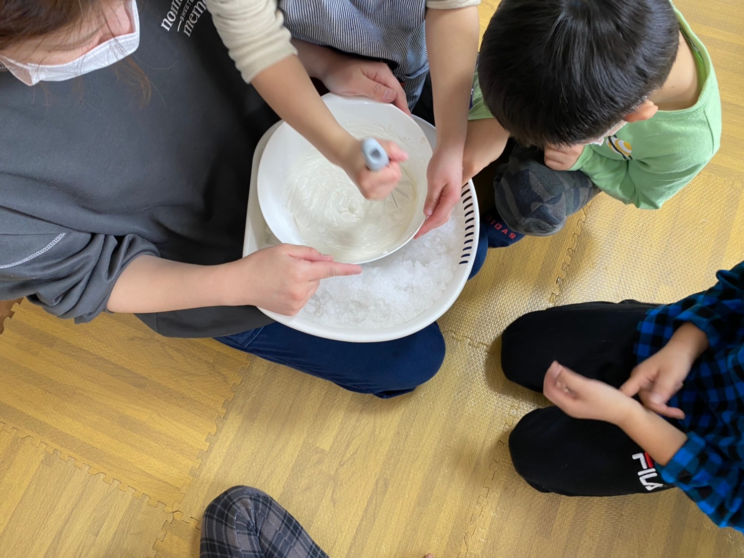実際に体験して1つの学びとして経験してみよう!と職員、子供達みんなで話し合い「一緒に生クリーム作ろう!」とバレンタインイベントを開催しました\(^^)/
